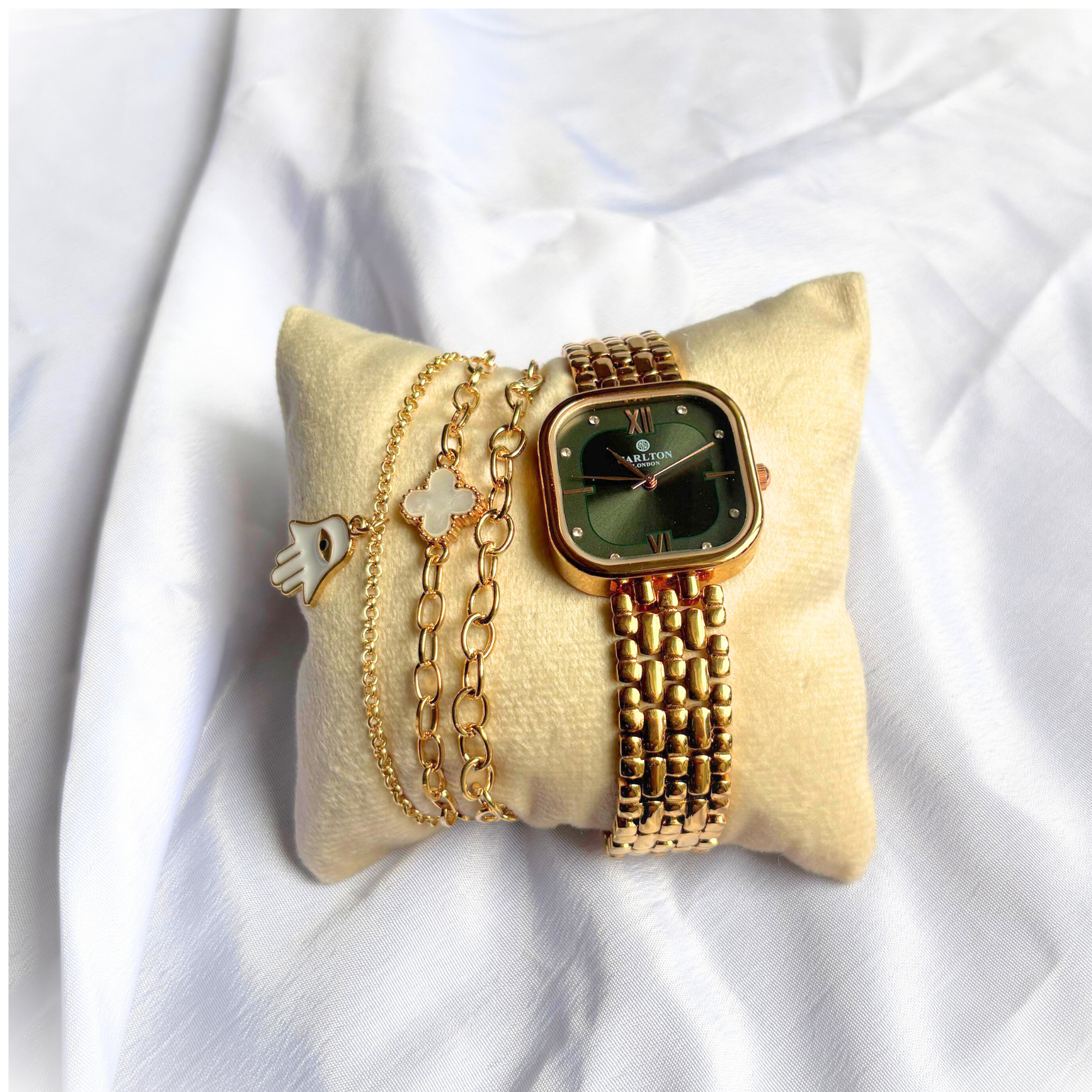 Wrap your wrist in charm and protection with the Golden Guardian bracelet. This delicate gold piece sparkles with heart charms and a crystal-studded hamsa, bringing a playful touch to your everyday style. Lightweight and modern, it’s the perfect little guardian for your daily adventures.