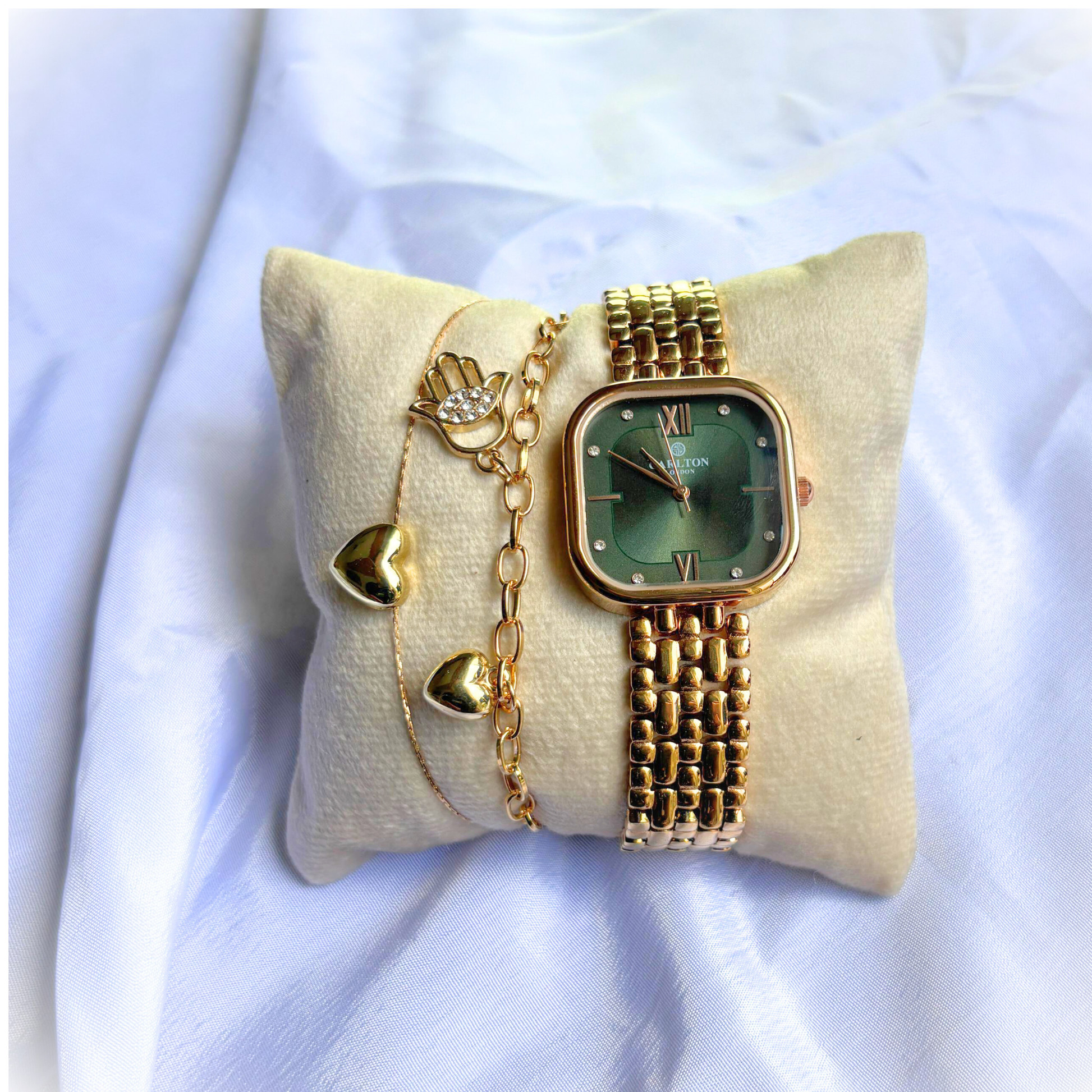 Add a touch of sparkle to your wrist with this playful gold chain bracelet. Featuring charming heart accents and a crystal-studded hamsa, it’s light and modern ideal for layering up or shining on its own. Perfect for turning everyday into a fun, stylish statement.