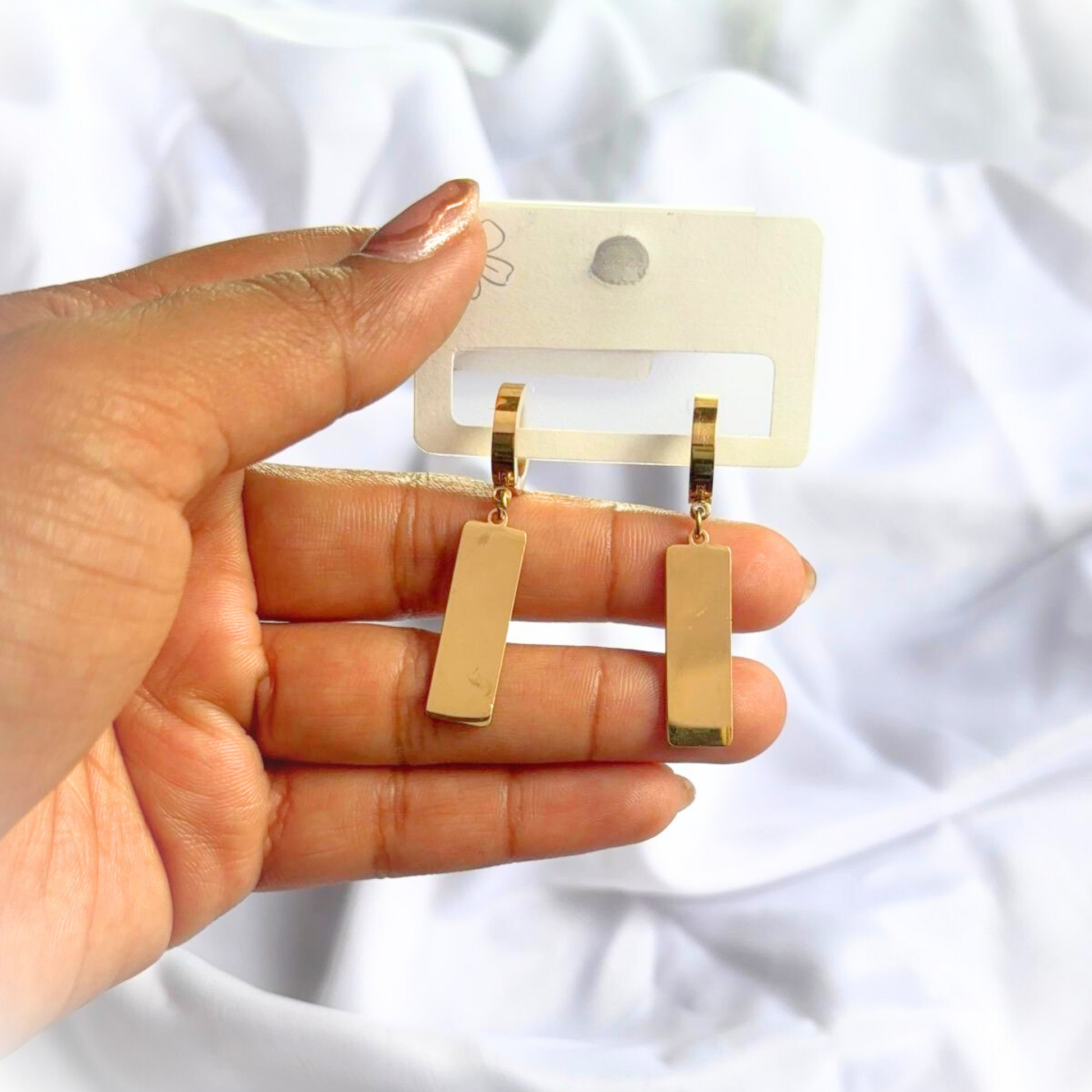 Add a dash of sleek sophistication with the Linear Luxe Drops. Their bold geometric shape and shiny gold finish bring the perfect mix of minimal chic and statement flair. Whether teamed with a crisp shirt, a silky dress, or a power blazer, these earrings turn heads and spark compliments effortlessly.