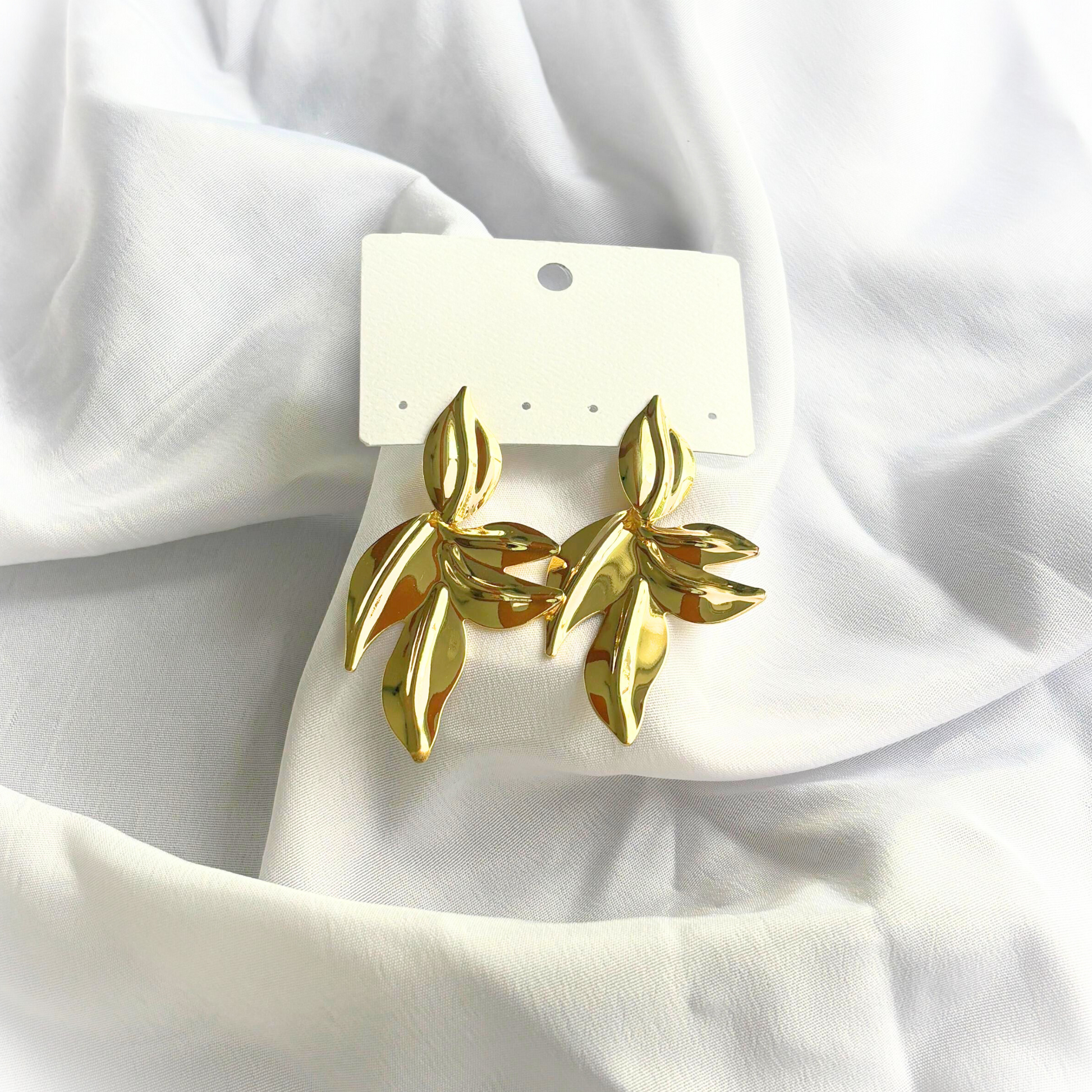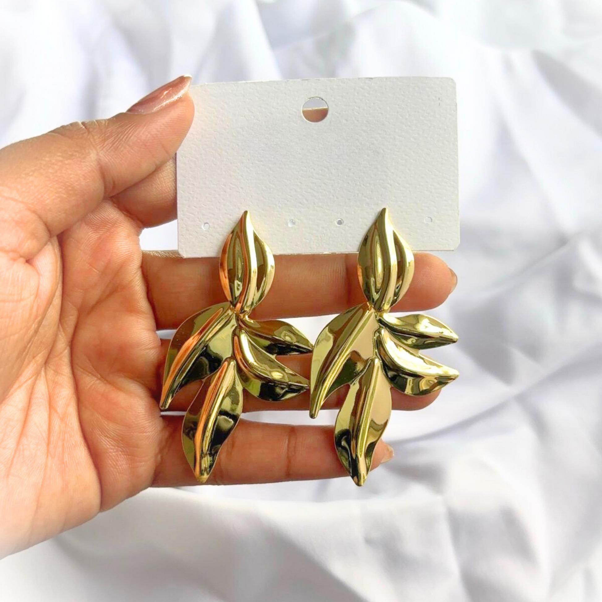Add a touch of wild charm to your look with Liora! These glossy gold-tone earrings capture the bold, delicate shape of leaves, turning natural beauty into a stunning accessory. Perfect for making a playful statement from sunrise to sunset, they bring a fresh, elegant twist to any outfit. Embrace nature’s flair with a dash of fun!