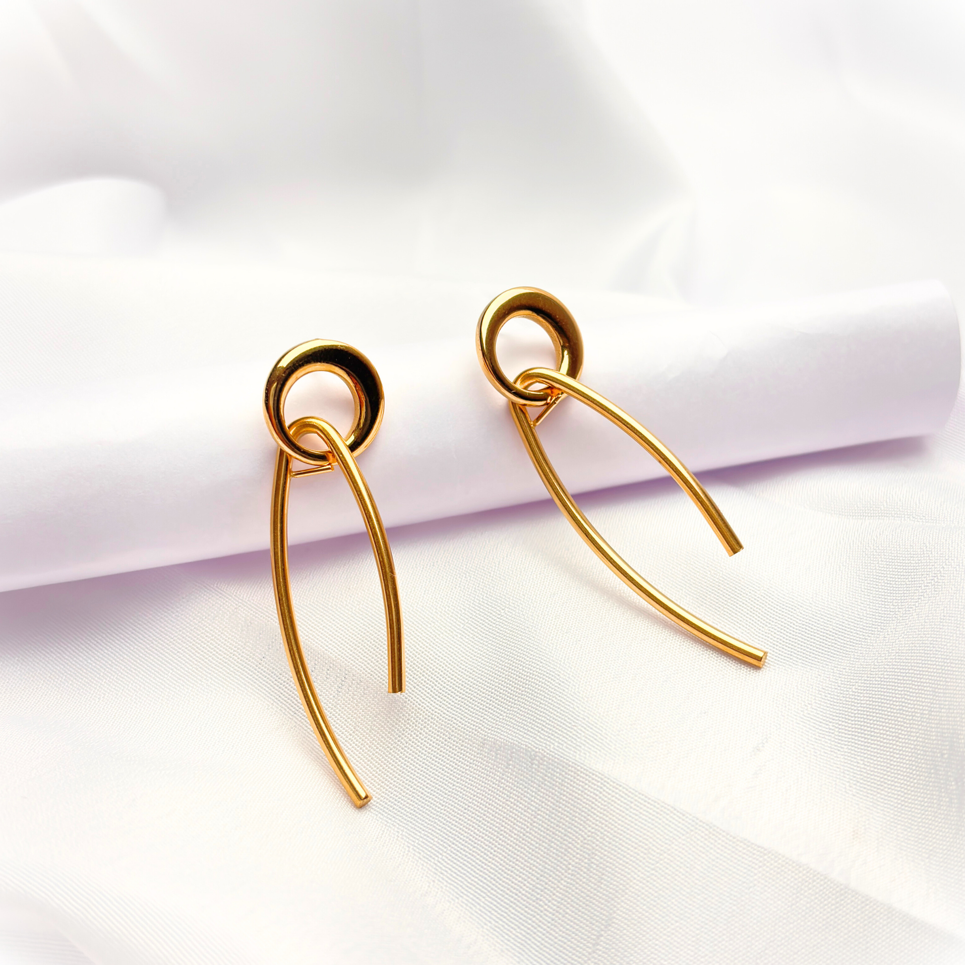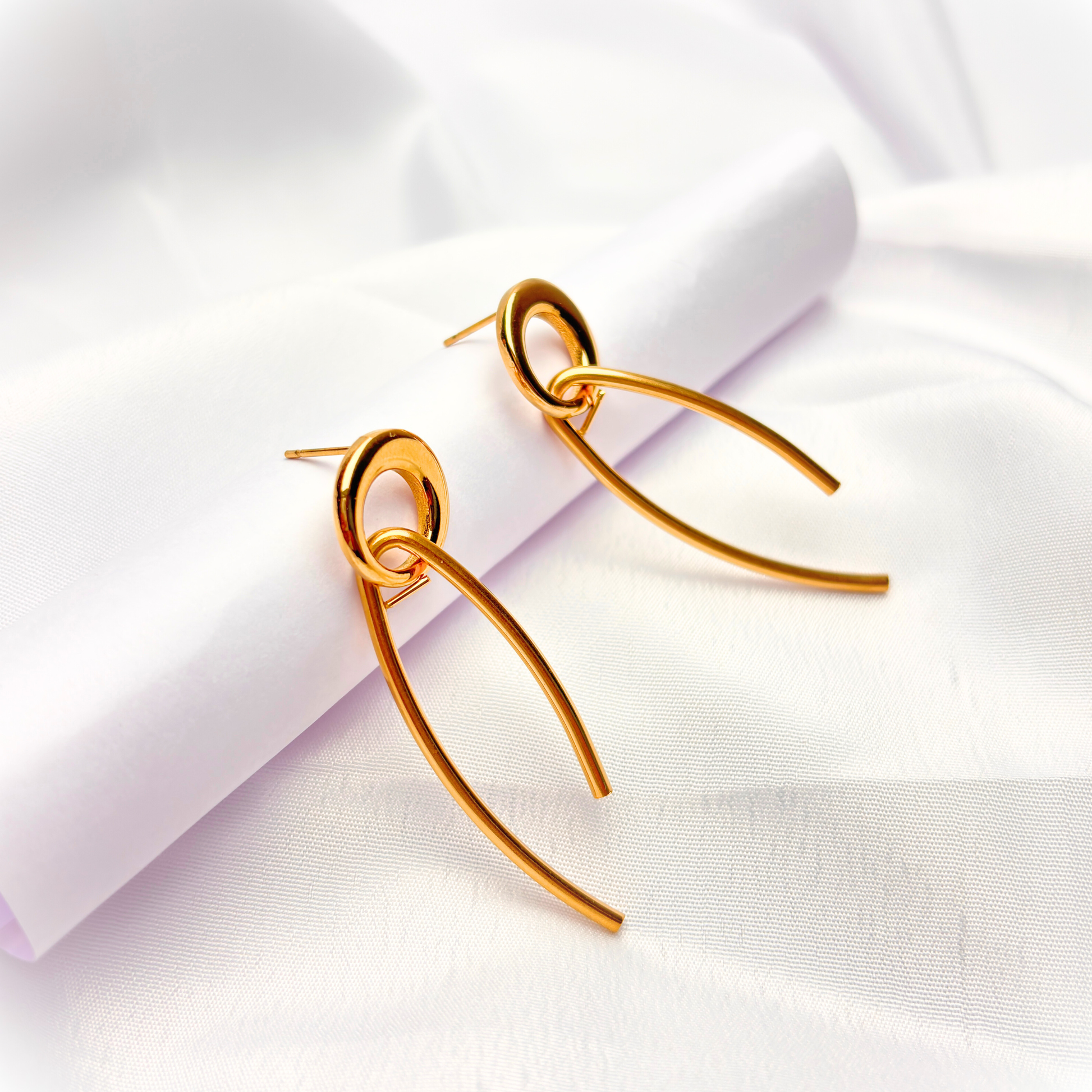 Add a touch of gleam and fun to your look with these gold statement looped earrings. Their bold, continuous loops catch the light beautifully, making them perfect for turning heads and sparking conversations wherever you go. Easy to wear and endlessly stylish, these earrings bring playful elegance to any outfit.