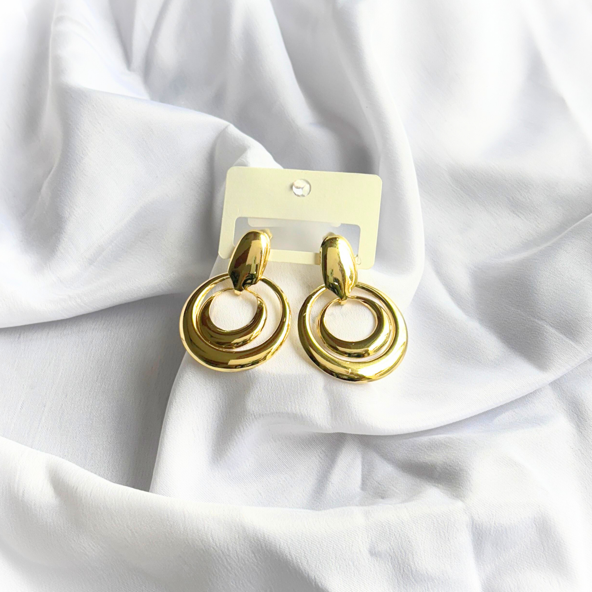 Make your style orbit around these playful Orbit Hoops Earrings. With their bold, interlocking golden loops, they add a fun twist to any look—casual or dressy. Lightweight and comfortable, they’re perfect for everything from office hours to brunch dates. Shine bright and make a cheeky statement wherever you go!