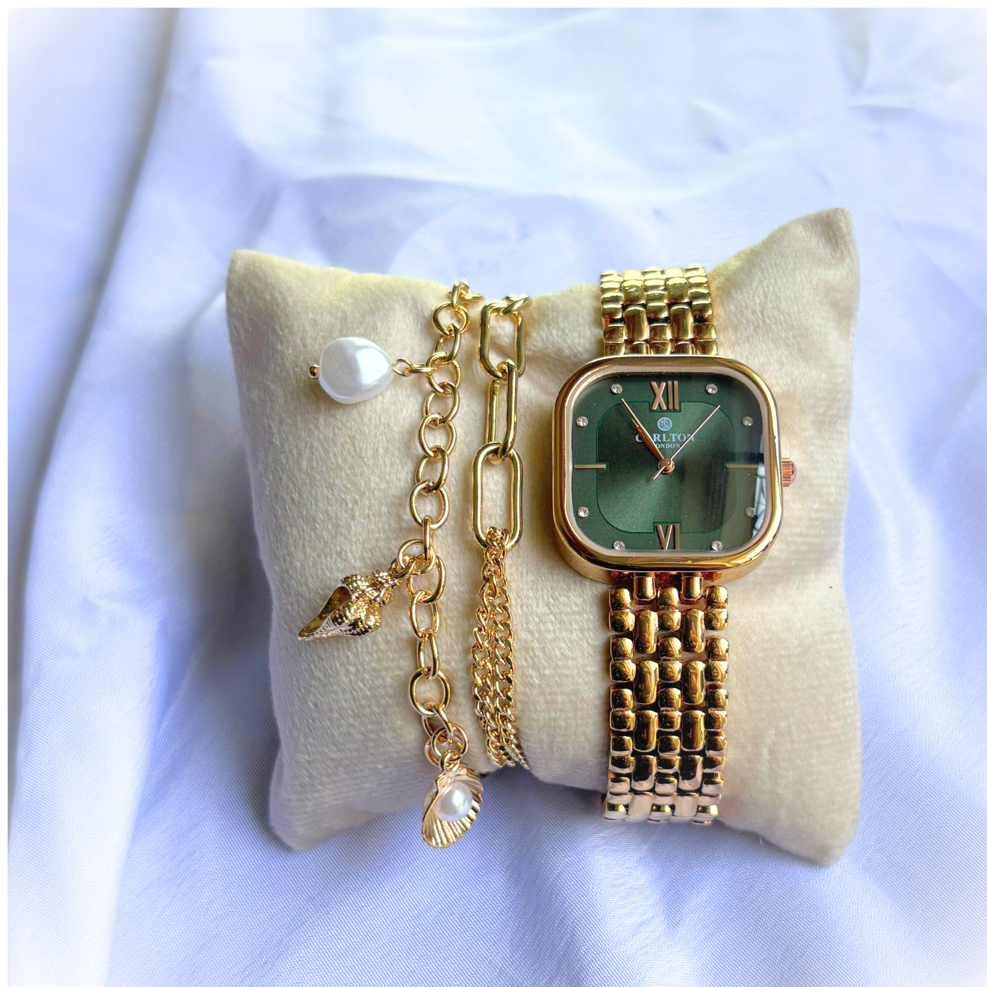 Add a splash of seaside sparkle to your style with the Pearl Drift bracelet stack. Playfully blending luminous pearls, a charming golden shell, and smooth chain links, this set shines with effortless elegance. Perfect for day-to-night looks, it brings a breezy coastal vibe wherever you go—making every outfit a little more playful and polished.